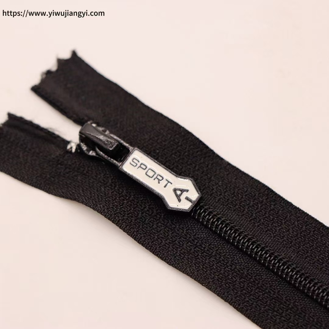 This "SPORT A" Black Sporty Zipper features a black tape with a black slider (printed with the "SPORT A" logo), making it simple and sporty in design. The zipper is smooth and durable, suitable for the design and production of sportswear (e.g., sports jackets, sports backpacks), outdoor equipment, and other products, adding a sporty style and practicality to the products, helping to enhance their functionality and brand recognition.