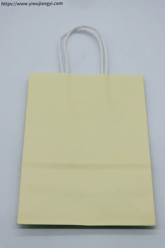 A gentle light yellow solid-color kraft paper tote bag, made of environmentally friendly kraft paper, with a tough texture that is not easy to break. The white paper rope handle is exquisitely crafted. The minimalist style is suitable for various usage scenarios such as holiday gifts and daily shopping, combining good looks with practicality.